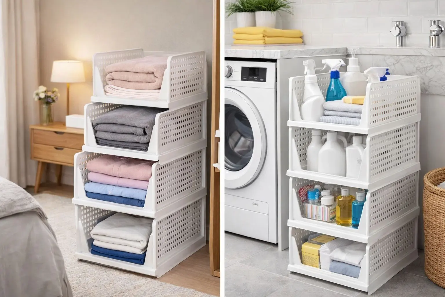 Transformá tus espacios con este práctico organizador apilable, ideal para mantener todo en orden de forma simple y elegante. Perfecto para ropa, toallas, accesorios o lo que necesites, optimizando cada rincón de tu hogar.