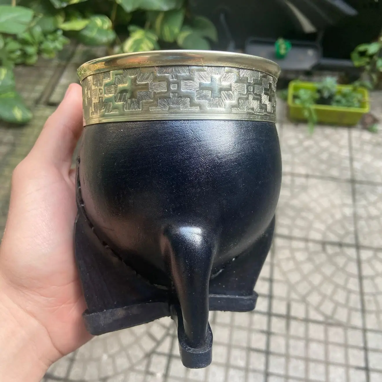 Elevá tu experiencia matera con este exclusivo mate imperial, una pieza que combina tradición, elegancia y calidad en cada detalle. Su acabado en negro profundo junto con la virola de alpaca grabada estilo pampa lo convierten en un verdadero símbolo de distinción.
