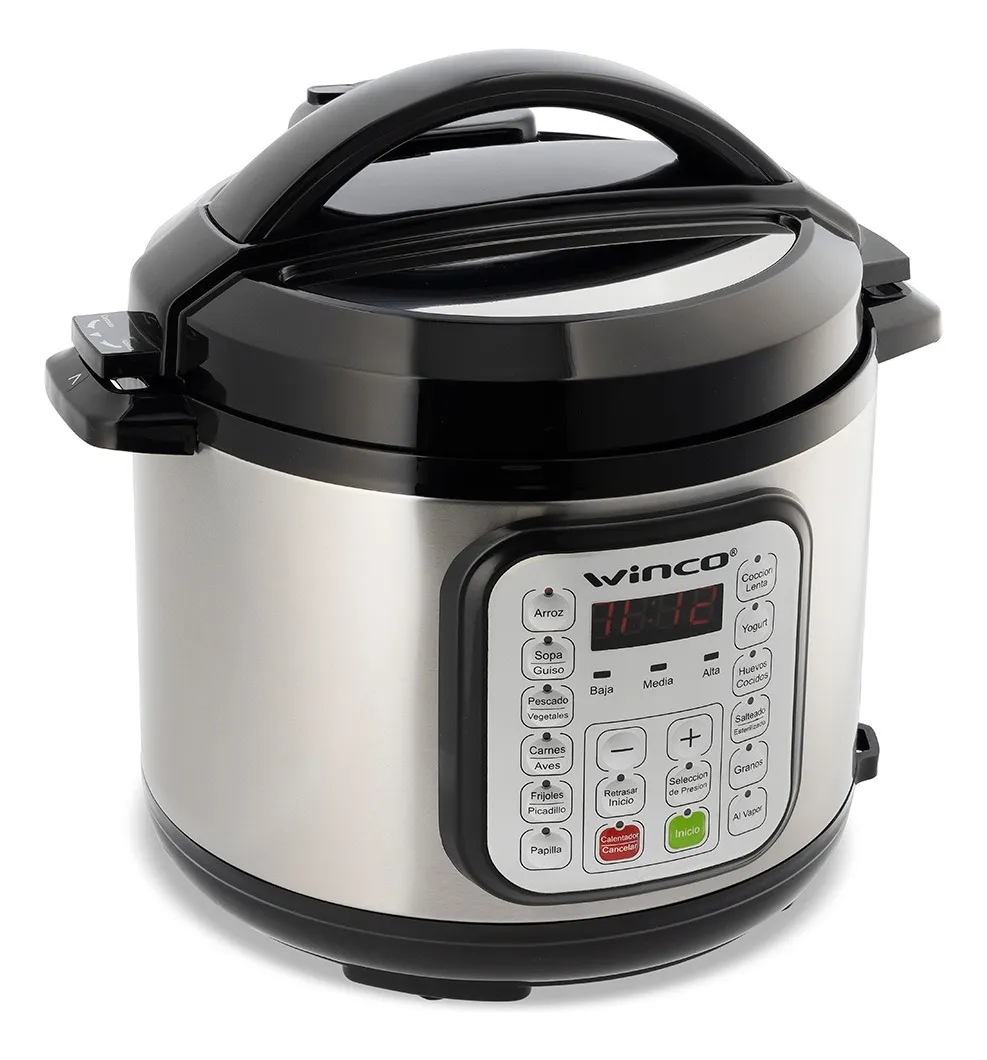 La Olla A Presión Eléctrica Winco W140 es la solución perfecta para quienes buscan una cocción rápida y eficiente. Con una capacidad de 5 litros, es ideal para preparar deliciosas comidas para toda la familia. Su presión regulable y tiempo programable permiten un control total sobre el proceso de cocción, mientras que su panel táctil facilita su uso. Con 12 funciones preestablecidas, podrás cocinar una variedad de platillos con solo tocar un botón. Además, cuenta con un display digital que proporciona información clara y precisa. Su recubrimiento antiadherente asegura que los alimentos no se peguen, y su función de apagado automático brinda tranquilidad al cocinar. Incluye accesorios como cuchara y taza medidora, y su diseño en negro y gris se adapta a cualquier cocina. Con un peso de 5100 g y dimensiones compactas, es fácil de almacenar y manejar. ¡Descubre la comodidad de cocinar con la Olla A Presión Eléctrica Winco!
