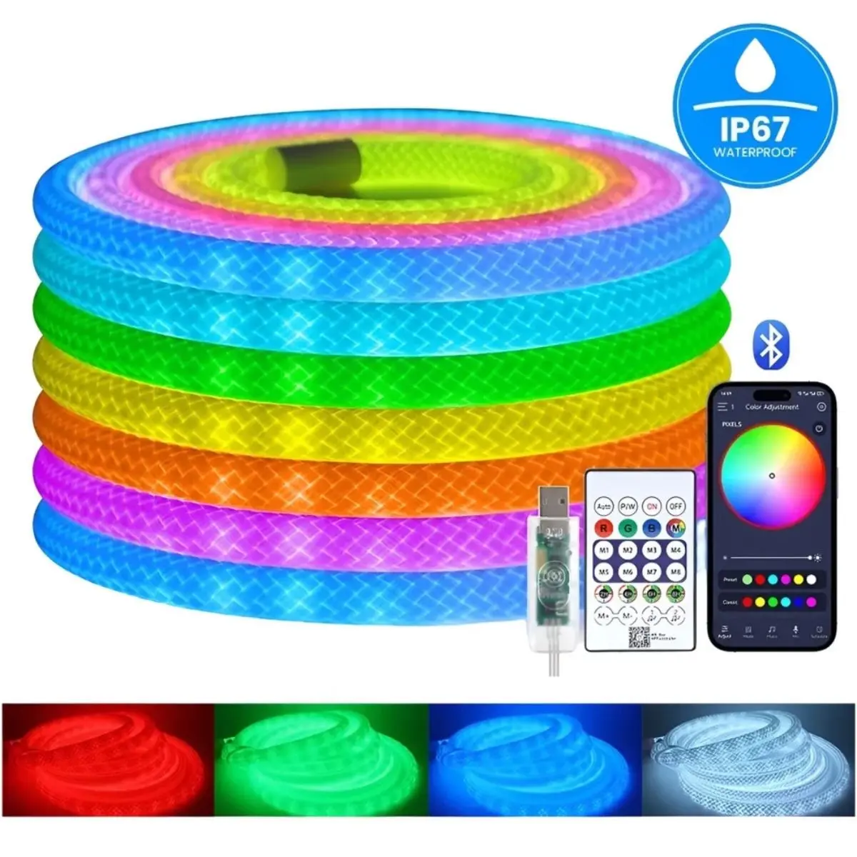 - Control Remoto Inteligente: Maneja las luces desde la comodidad de tu sofá. El control remoto incluido te permite ajustar el color, la velocidad y los efectos de las luces sin moverte de tu lugar.